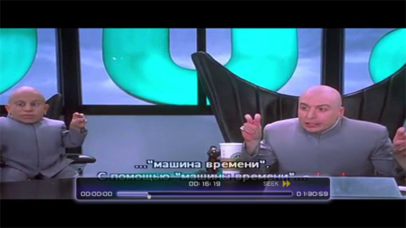 Различные кодеки-контейнеры (DivX, XViD, AVI, MP4, MPEG2) с видео стандартного разрешения (ТВ и 576p) воспроизводились без всяких проблем. Там работало ускорение 2-4-8-16-32х, можно было с легкостью перескакивать на любую временную метку, причем это все сделано очень наглядно. Кстати, ускорение работало только вперед, назад можно было перескакивать только по временным меткам.