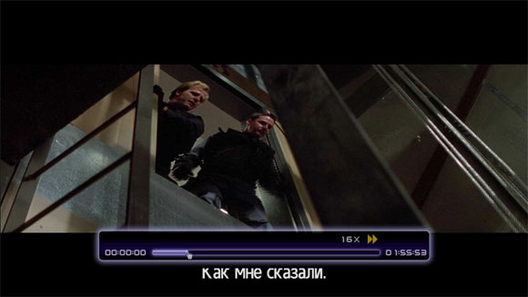 Причем в этих двух режимах воспроизведение идет по-разному. Когда вы выбираете Blu-ray Menu - воспроизведение ничем не отличается от обычного BRD. Тут доступны меню, всплывающее меню настроек, выбор аудиодорожек, субтитров, ускорение просмотра 2-4-16-32х, переход на следующий раздел. Однако нет перемещения на нужную временную точку.