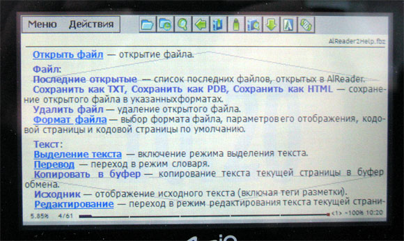 Зачем там нужен просмотр изображений, я, если честно, не понял. Видимо, до кучи. Аудиоплеер также повеселил, но его необходимость в данном случае вызывает огромные сомнения - у всех в машине есть магнитола. А вот ридер (это адаптированная версия знаменитого AlReader2), наоборот, очень порадовал, потому что иметь возможность что-нибудь почитать в глухой пробке - это очень даже полезно!