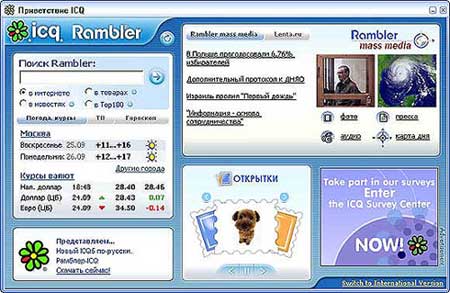 Какой, к черту, широкий спектр услуг, ранее бывший привилегией только американской молодежи? Разговор через ICQ голосом? Видеоконференции? Должен огорчить автора: это все и раньше было доступно нашей славной российской молодежи, а не только американской. Потому что это базовая функциональность ICQ Lite пятой версии. Хоть английской, хоть русифицированной. Хоть китайской. Любая молодежь могла задействовать все эти сервисы. Без Rambler.