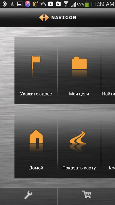 Меню у Navigon состоит из крупных пиктограмм, оно простое и понятное.