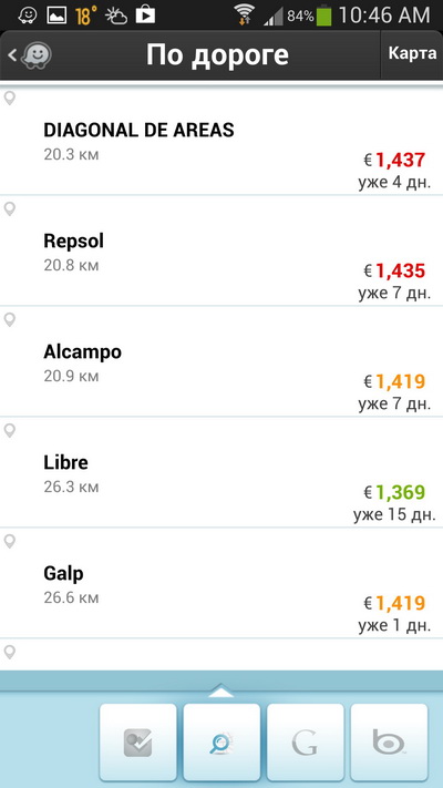 Еще одна интересная возможность - вывод заправок, расположенных поблизости, с ценами на бензин.