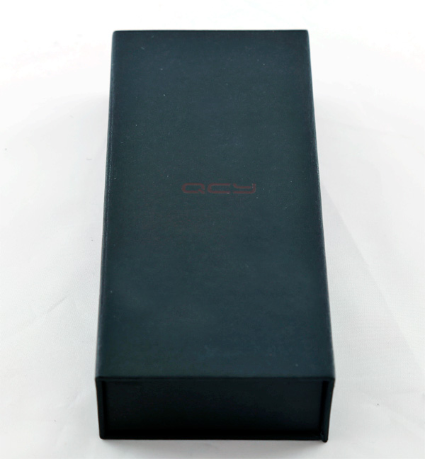 А эти QY19 я специально заказал в более продвинутой упаковке, она выглядит вот так: черная коробка, на которой малиновыми буквами написано QCY