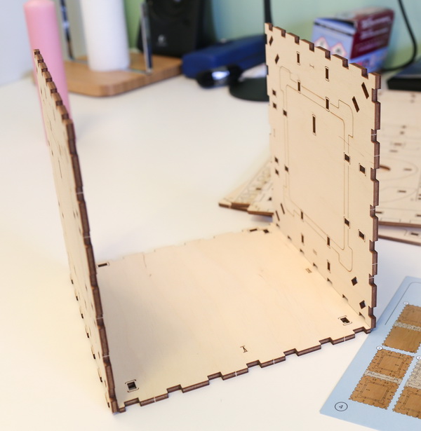 Для сына, правда, эта моделька была явно сложноватой: он с большим энтузиазмом начинал со мной собирать, но потом через некоторое время утомлялся и отправлялся заниматься чем-то другим. Но оно и понятно, тут возраст указан 12+, а моему пока только 8 лет. Тем не менее, так как я сейф собирал несколько дней по вечерам (понятно, что я не мог на это тратить полный рабочий день), он периодически снова помогал мне в сборке.