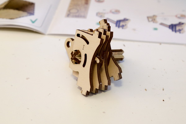 Так это очень сложная моделька. А Ugears хорош тем, что практически все собирается руками безо всякого клея и так далее 😉