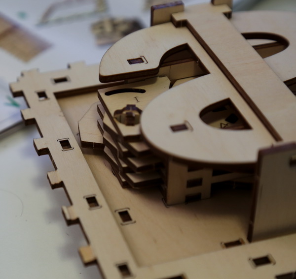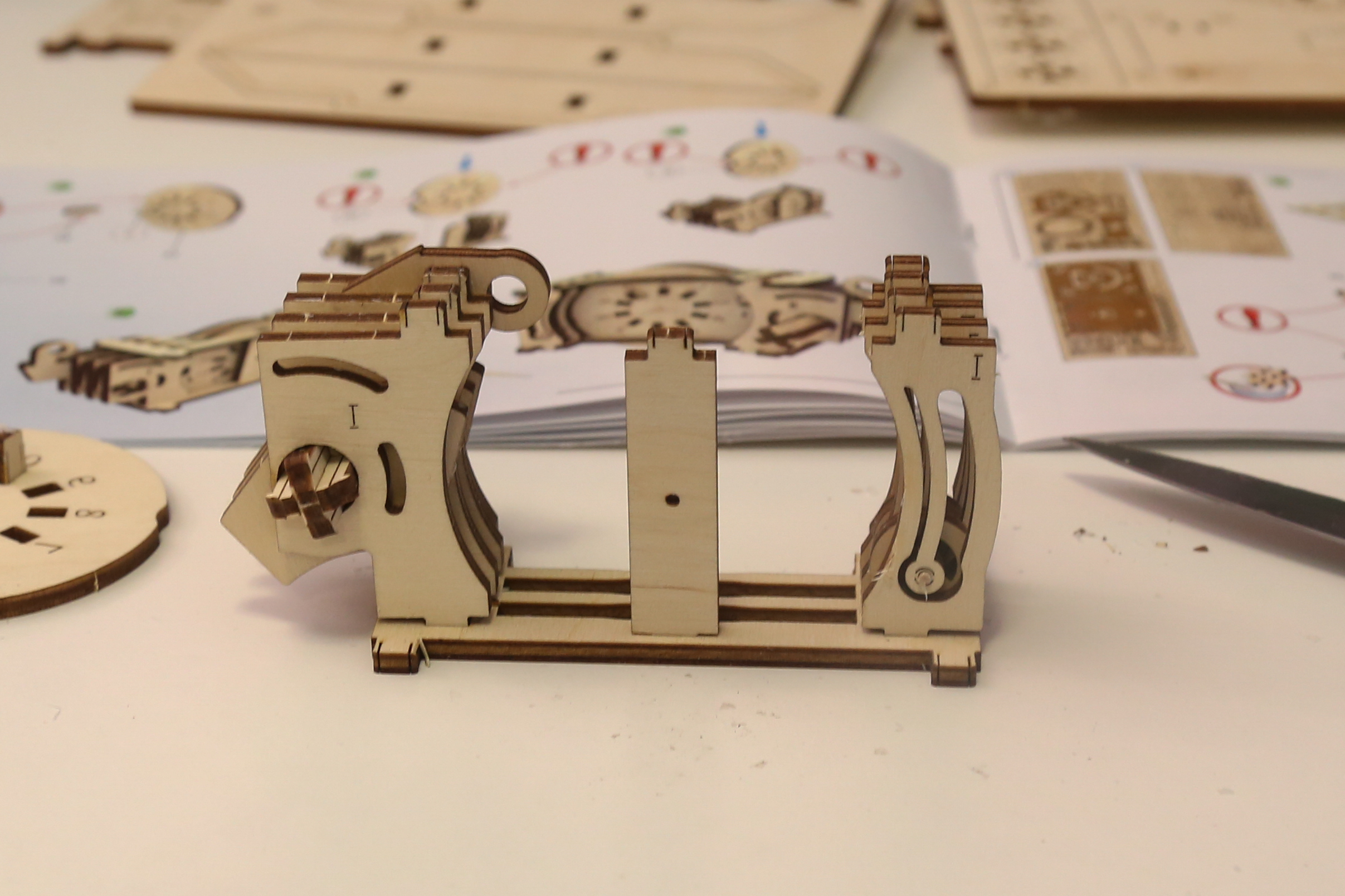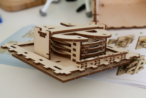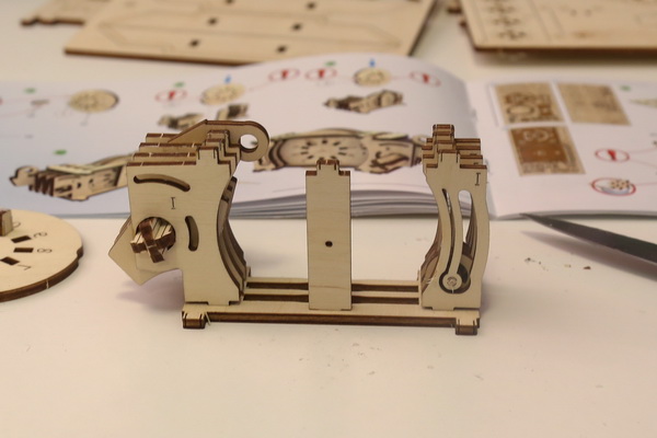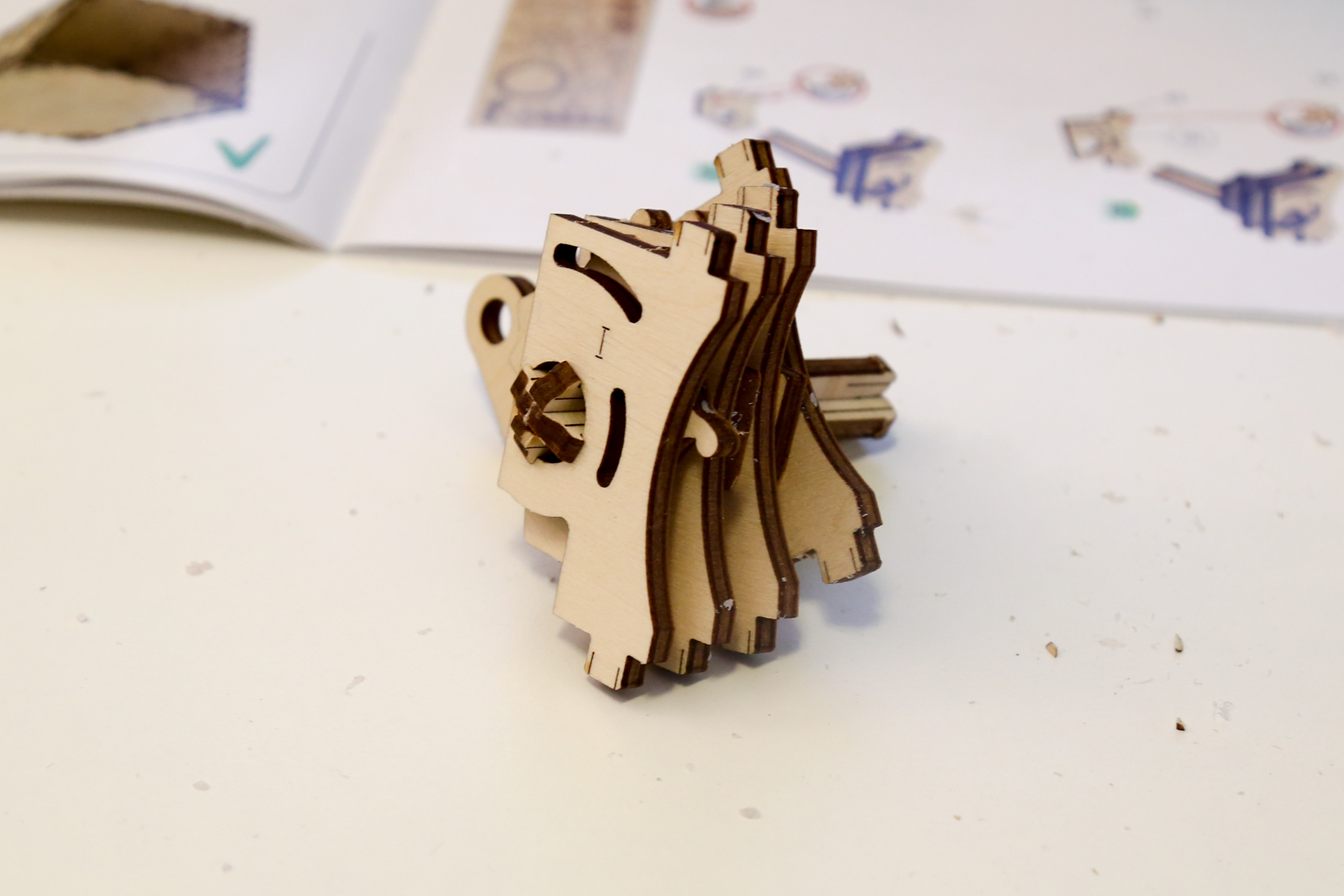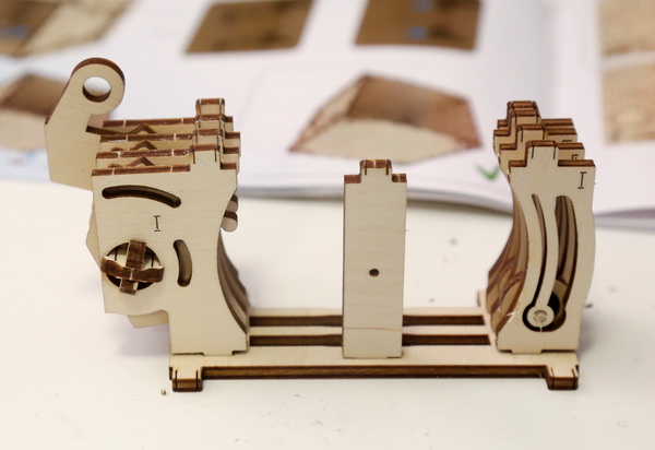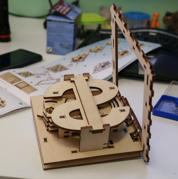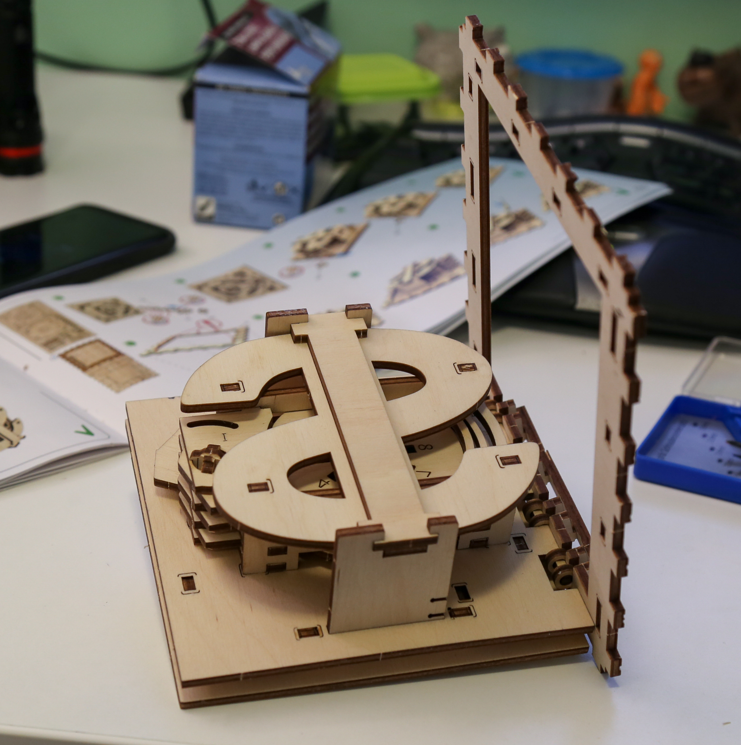 Также я, конечно, восхищен создателями всех этих моделей: это как же нужно все придумать, рассчитать и создать таким образом, чтобы практически одними только руками можно было бы из десятков (и сотен) всяких деталек собирать вполне работающие деревянные механизмы! Я, если честно, не очень представляю, как такое вообще можно разработать.