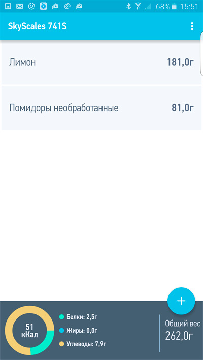 Нужно вам взвесить какой-нибудь продукт - выбираете его из базы программы, кладете на весы, в программе записывается вес продукта, и вам сразу показывается процентное соотношение белков, жиров и углеводов, а также количество килокалорий, содержащихся в данном продукте. Удобно, не так ли?