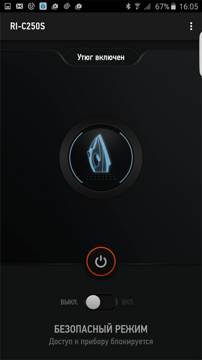 Да-да, он также управляется со смартфона. Зачем? Исключительно из безопасности. На смартфоне показывается, когда утюг включен, его можно выключить, также демонстрируется положение утюга в пространстве (а вдруг его забыли поставить на попа?).
