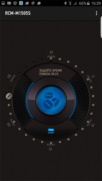 Целиком управляется со смартфона. Засыпали кофе в зернах, запустили приложение.
