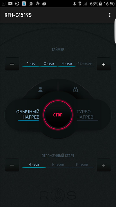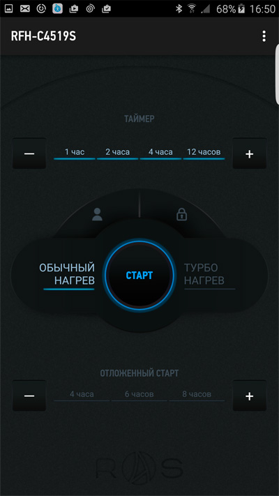 Вы можете задавать режим, продолжительность нагрева, включать отложенный старт.