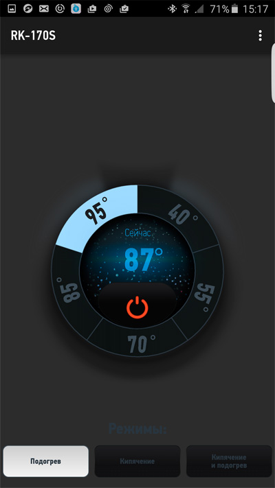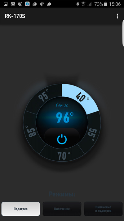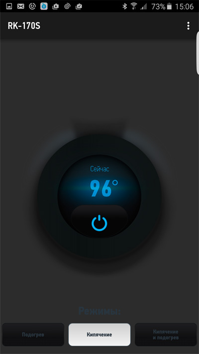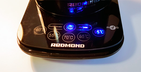 Чайник может работать в нескольких режимах: просто вскипятить воду, нагреть воду до определенной температуры и сохранять эту температуру.