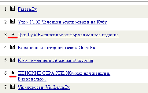 Видите, у некоторых сайтов стоит замочек на ссылке статистики? Это означает, что без пароля вы статистику, предоставляемую сервисом TopList, не увидите.