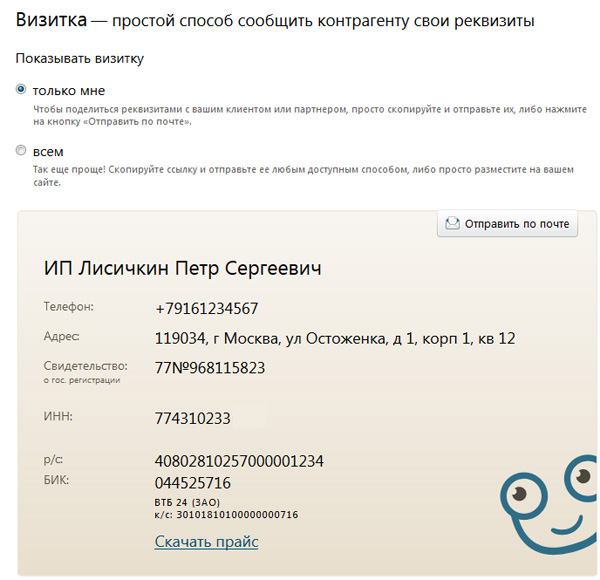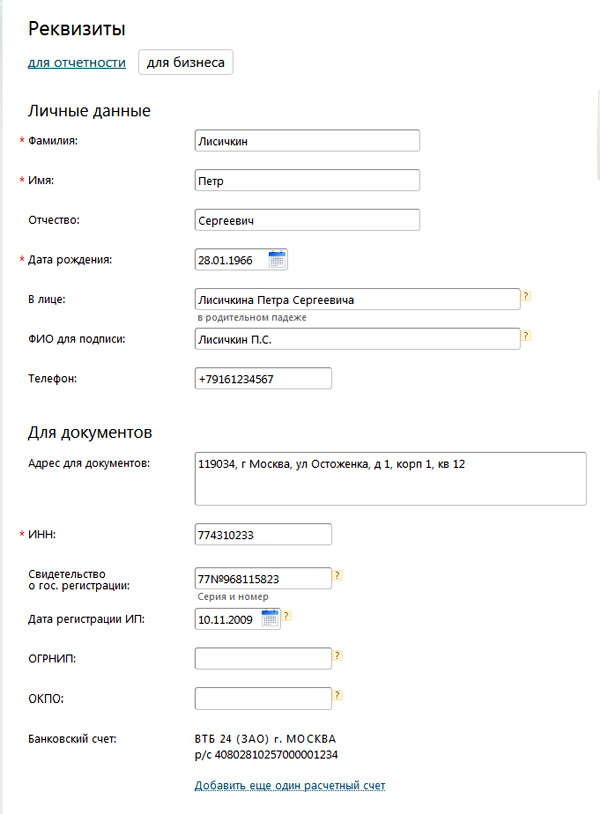 После подтверждения e-mail получаем доступ к системе, логинимся и сразу отправляемся заполнять реквизиты своего ИП - без этого работу не начать.