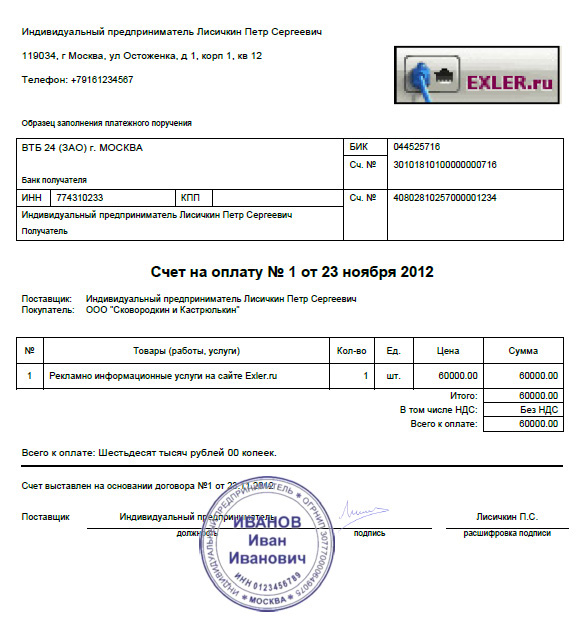 Сначала подготовим документы - договор на размещение рекламы на сайте, счет и закрывающий акт.