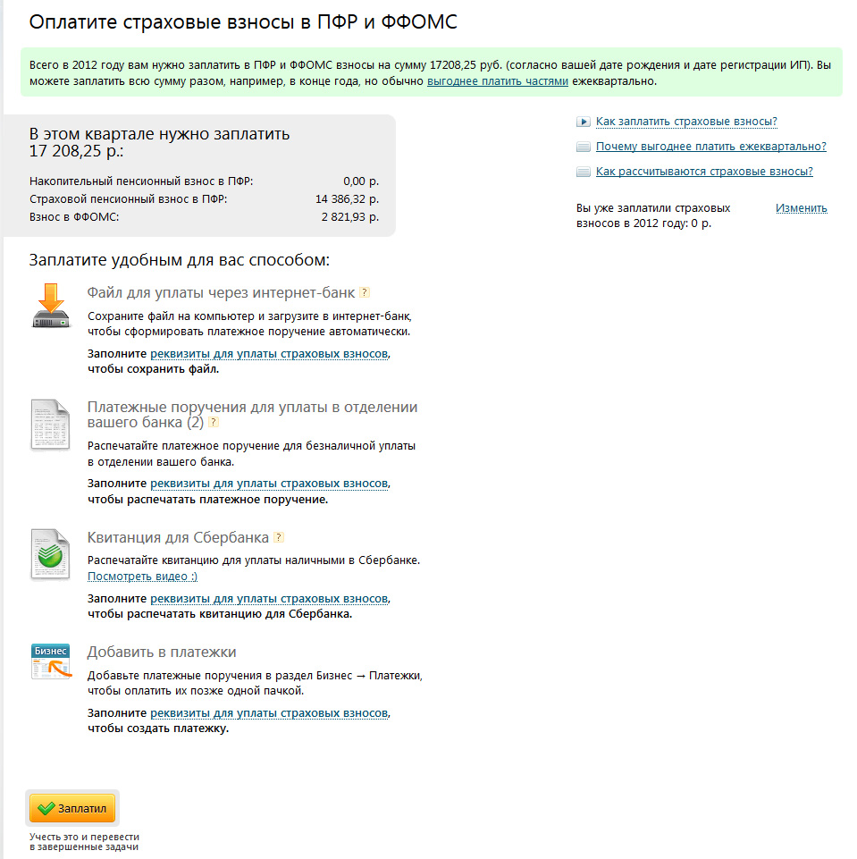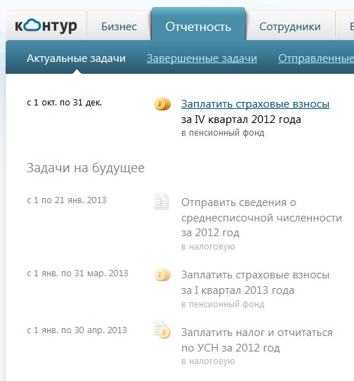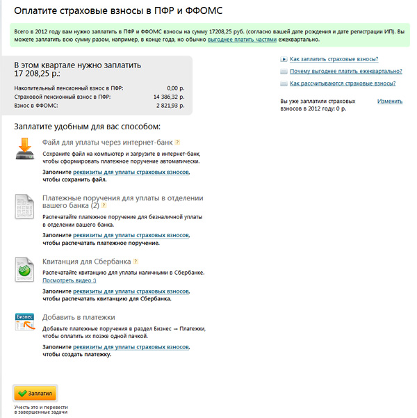 В списках задач тут же появятся платежи взносов с зарплаты в пенсионный фонд.