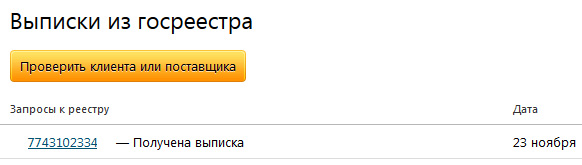 Еще один любопытный раздел - "Шпионаж". На самом деле это, конечно, никакой не шпионаж, а просто если вам нужно проверить клиента, в котором вы по каким-то причинам сомневаетесь, то по его ИНН или ОГРН можно получить выписку из государственного реестра. Делается выписка автоматически, приходит за пару часов.