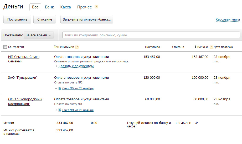 Ну, вот вроде и все. На мой взгляд, система делает все, что мне нужно как ИП, и пожеланий у меня к ней возникло очень и очень немного: программа почти полностью устраивает, я теперь дела своего ИП только там и веду. Теперь закончились файлы Excel со списком клиентов и отслеживанием, сколько и когда они перевели; о всех необходимых платежах меня теперь предупреждают заранее и выдают готовые платежные поручения; я вижу все свои финансовые потоки по ИП; с легкостью делаю готовый комплект документов по любому заказу. Удобно, очень удобно.