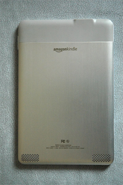 Задняя крышка устройства выполнена из алюминия. В нижних углах располагаются динамики, с помощью которых воспроизводится музыка или озвученный текст.