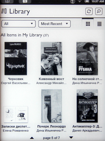 Поиск по книгам библиотеки (названия), по магазину. Русской раскладки в магазинной прошивке, разумеется, нет.
