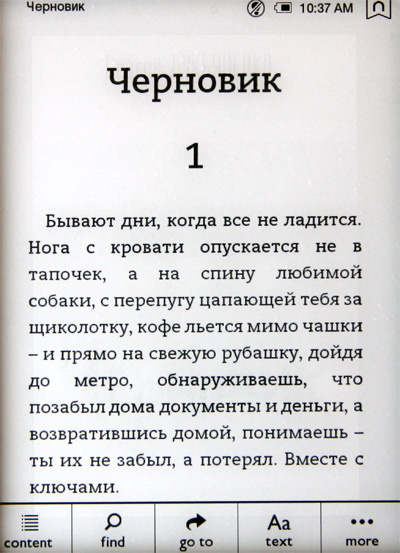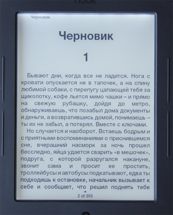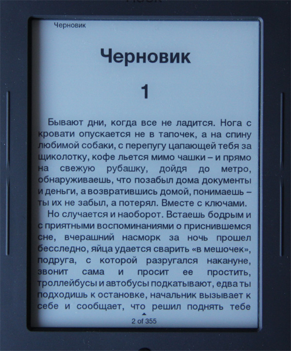 Оно, конечно, в полной темноте с подсветкой читать так же плохо, как и в случае TFT-дисплея, - все это очень контрастно, глаза устают почти мгновенно.