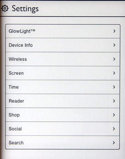 В меню Nook Simple Touch было практически все то же самое, только без пункта подсветки.