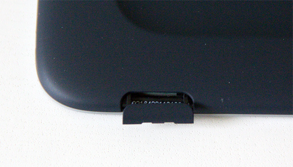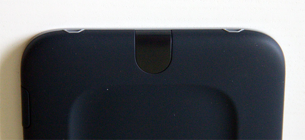 На верхнем торце - большая удобная кнопка включения (кто бы PocketBook объяснил, насколько неудобна малюсенька кнопка включения, расположенная в жопке устройства, - я уже пытался объяснять). Слева-справа от кнопки включения - специальные углубления для крепления обложки.
