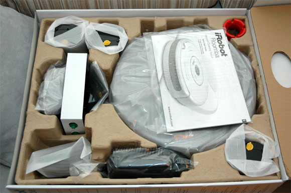 В комплект кроме самого устройства входят: аккумулятор, зарядное устройство, зарядная база, три ограничителя/координатора движения, пульт управления, дополнительный сменный фильтр, гребенка для очистки щетки, запасные щетки - боковая (лопастная), щетинистая и резиновая.