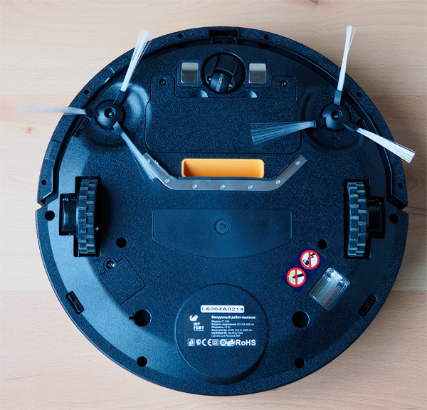 Данный робот-пылесос имеет красивое поэтическое название KT-504 (счастливое число, между прочим) и отличается не только возмутительно низкой ценой для такого настоящего Друга Семьи, а еще и тем, что у него нет турбощетки. Совсем! Как класса!