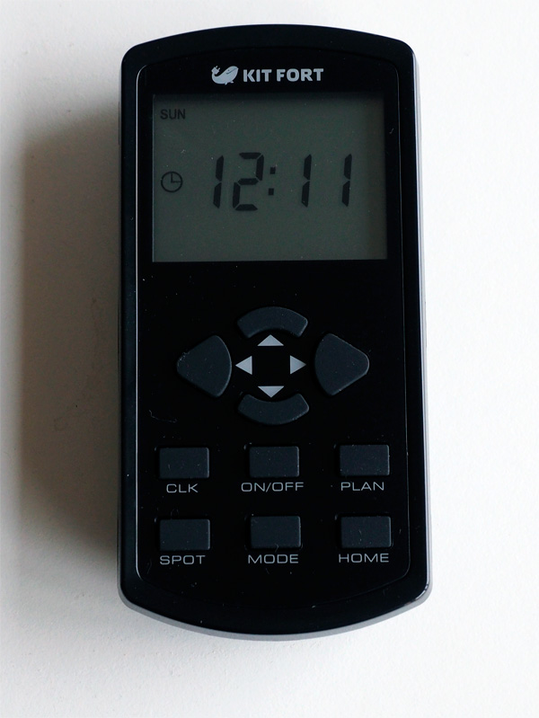 Для удобства управления роботом-пылесосом тут присутствует пульт ДУ. На большом дисплее отображается время, а с пульта вы можете включать различные режимы работы пылесоса, а также задавать расписание его работы.