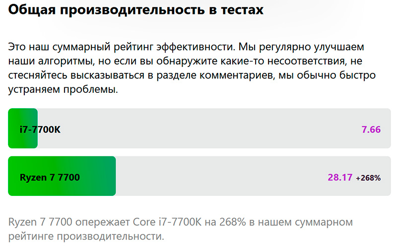 Ну и сравнение нынешней платформы AMD Ryzen 7 7700 с предыдущей платформой Intel Core i7-7700K.
