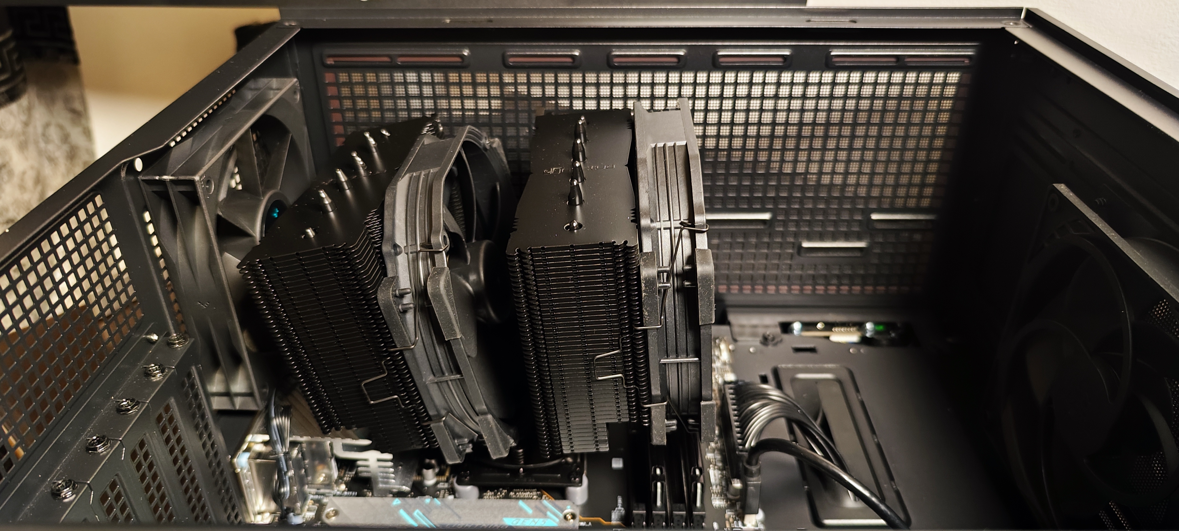 Мы хотели перевернуть два правых корпусных кулера, но, во-первых, это смотрелось сильно хуже, а, во вторых, у них крепеж не был для этого предназначен.
