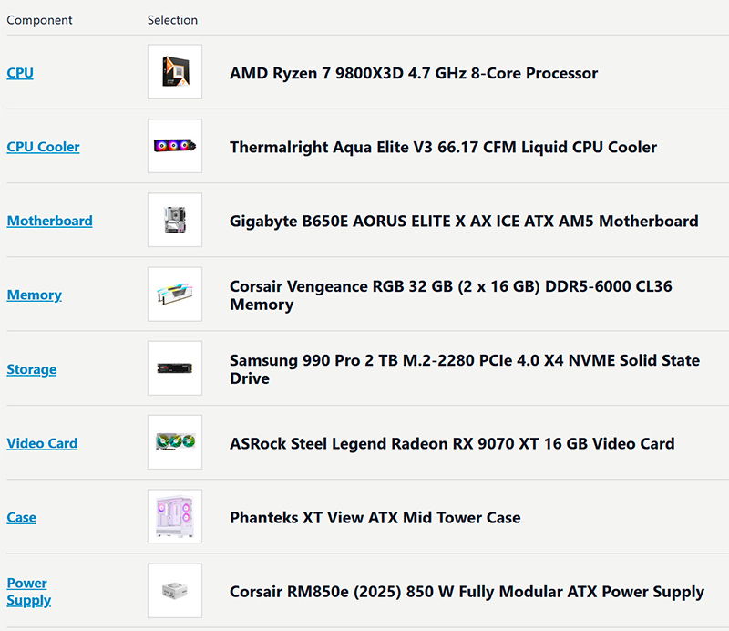 Как обычно, конфигурацию этого компьютера мы обсудили в моем блоге - вот здесь и вот здесь, - комплектующие подбирались с проверкой совместимости на очень полезном сайте PCPartPicker, и финальная конфигурация, с учетом обсуждений и корректировок, получилась вот такой.