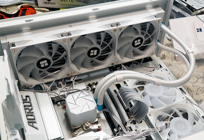 Но я почитал и посмотрел обзоры - именно данную модель хвалят за тишину (малошумная помпа, вентиляторы ограничены 1500 RPM), простую установку и простоту подключения ARGB-подсветки. Вот, например, обзор данной системы в tom's HARDWARE - там в выводе пишут, что она "выше среднего по эффективности, при этом одна из самых тихих и дешёвых 360-мм систем жидкостного охлаждения".