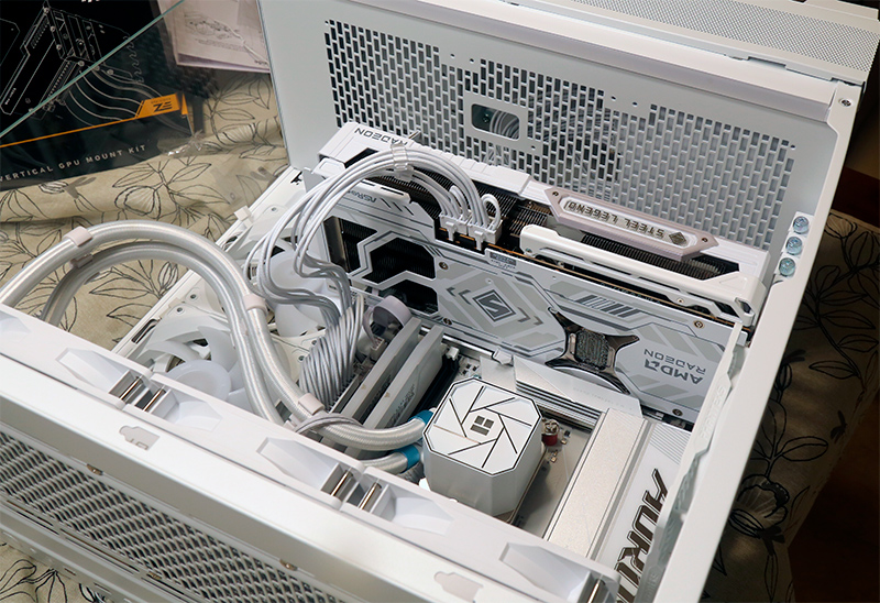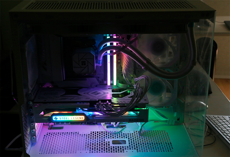 Завелось, UEFI загрузилась и все определилось. Оставалось разобраться с RGB, также мы хотели установить видеокарту вертикально, для чего был куплен специальный переходник.