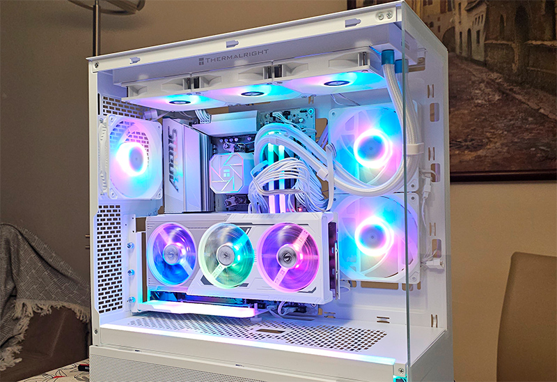 А потом сын поставил программу SignalRGB и с ее помощью настроил подсветку компьютера так, чтобы было, как он задумал - а именно вот таким образом. Идея была именно в том, чтобы сделать это все чарующе белым, а не в том, чтобы это все переливалось всеми цветами радуги.