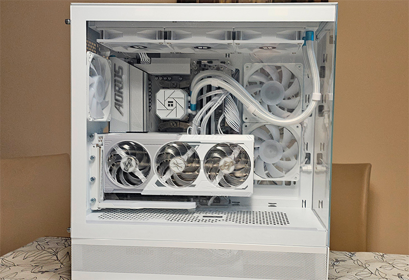 Что там получилось с шумами? Корпусные кулеры и кулеры процессора издают некоторый шум, но он негромкий и не раздражающий. Три кулера видеокарты в обычном режиме не слышны вообще, при сильной нагрузке в играх они шумят, но тоже несильно.