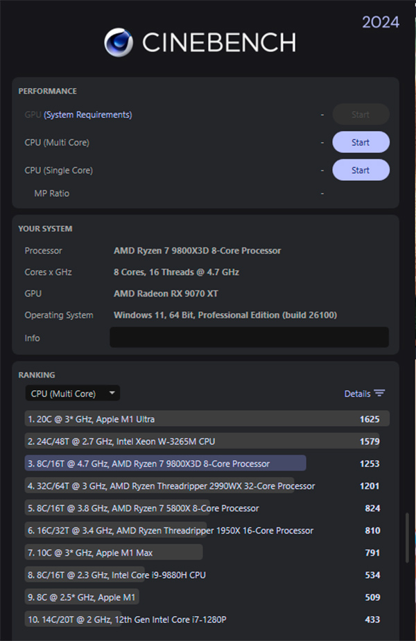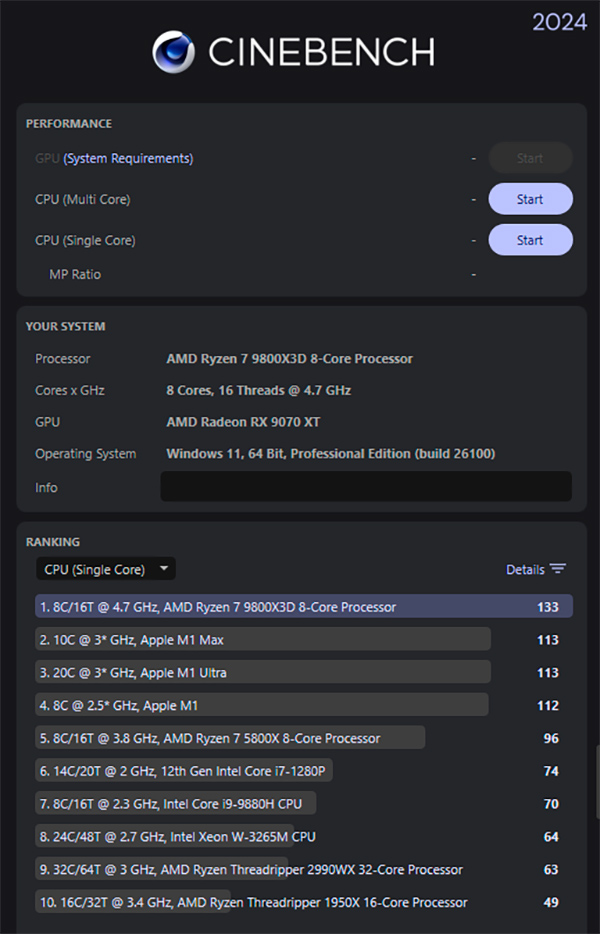 Тесты платформы по Cinebench: Single Core и Multi Core.