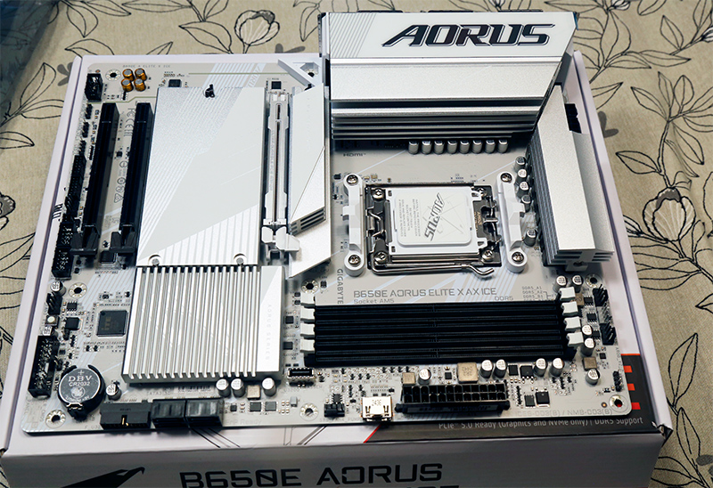 Достаем материнскую плату. На нее сначала установим процессор, память и диск SSD, потом поставим ее в корпус, подключим питание и установим систему охлаждения.