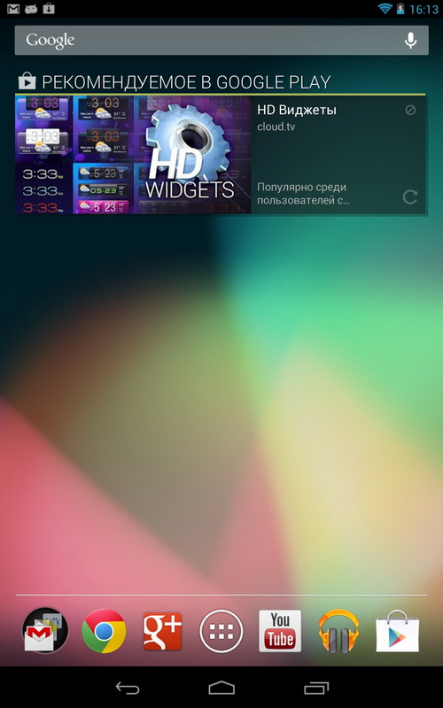 На соседних десктопах также ничего нет, за исключением одинокого печального виджета Google Play.