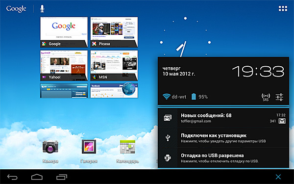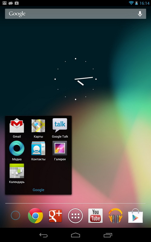 Десктоп загруженного планшета выглядит по-гугловски лаконично.