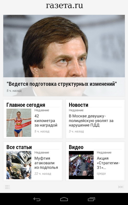 Впрочем, разработчики объясняют новый вид уведомлений тем, что, во-первых, телефонная и планшетная версии приводятся к единому виду, а кроме того, приложениям теперь позволено использовать самую нижнюю строку, где кнопки перехода, - раньше эту строку можно было только затенять. (Я пока не видел ни одной программы, которая бы использовала эту строку, но, может, они еще просто не появились.)