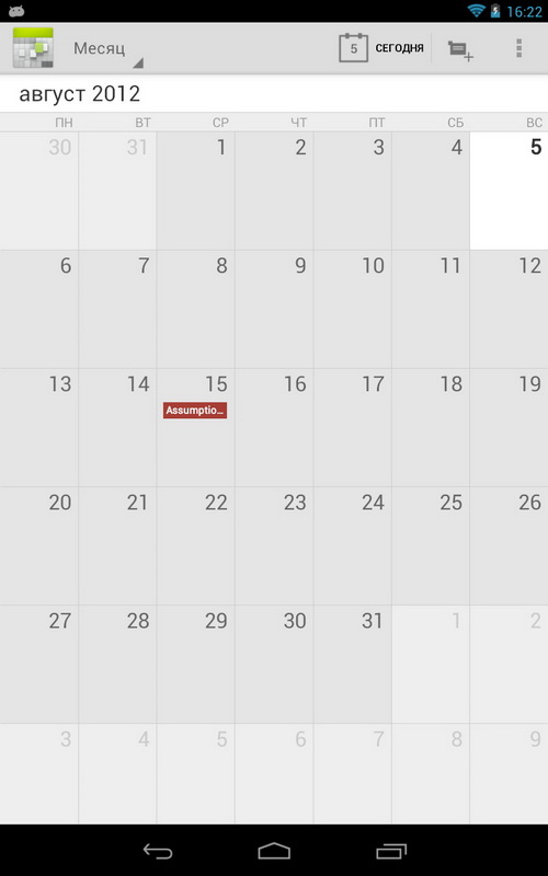 С календарем - все как обычно. Для планшета это приложение не особенно актуально, а для телефона я сейчас использую удобный aCalendar+ (есть и бесплатный).