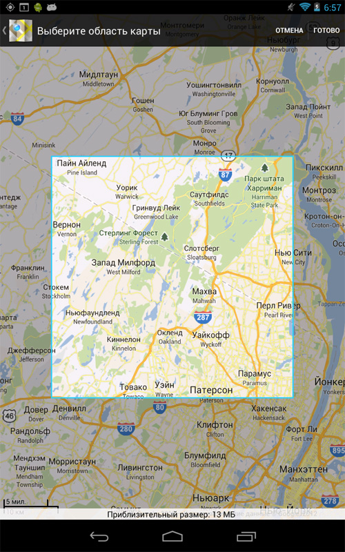 Кроме того, в этой версии теперь можно сохранять карты для использования в офлайне - это очень ценно. Впрочем, по каким-то очень загадочным причинам сохранять удается далеко не все города. Например, Нью-Йорк, Лондон и так далее сохраняются без всяких проблем. А вот Москва - фигушки: появляется сообщение "Невозможно сохранить эту область". За что Москве такая немилость и чем отличается сохранение куска карты с Москвой от Нью-Йорка - непонятно совершенно.