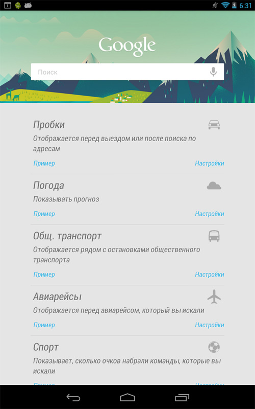 Вообще, как я понял, в Google Now очень многое привязывается к текущему местоположению - вам выдают всякую полезную информацию, связанную с вашими перемещениями. Поэтому данная утилита намного более актуальна в телефоне, нежели в планшете. Вот на телефоне ее как следует и потестируем.