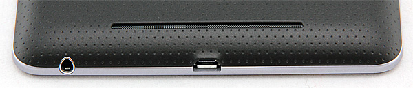 На нижнем торце - microUSB, выход для наушников. Чуть выше выхода USB - щель динамика. (Разработчики говорили о том, что здесь используется один динамик, но пытливые разбиратели гаджетов внутри обнаружили два динамика.)