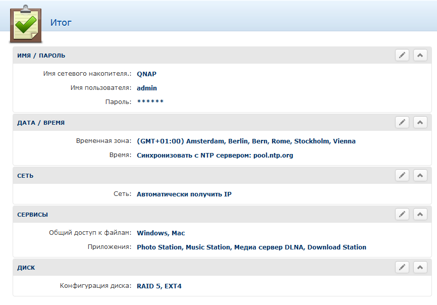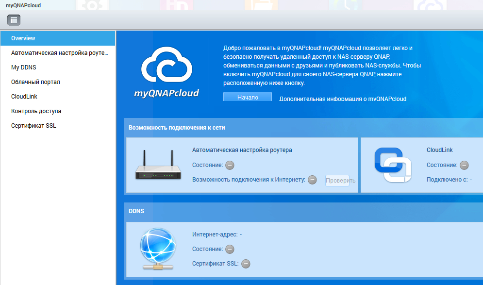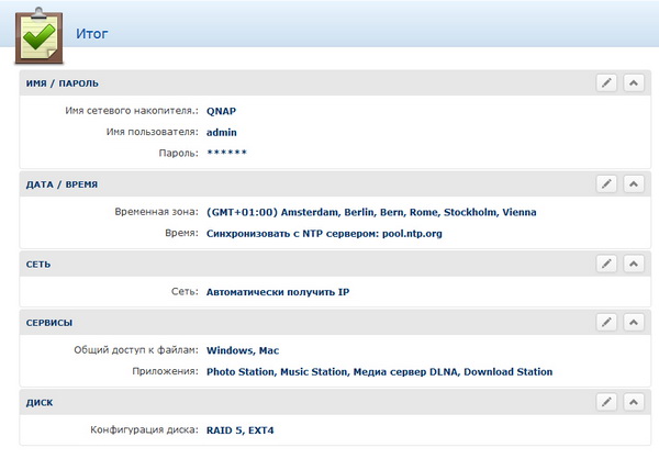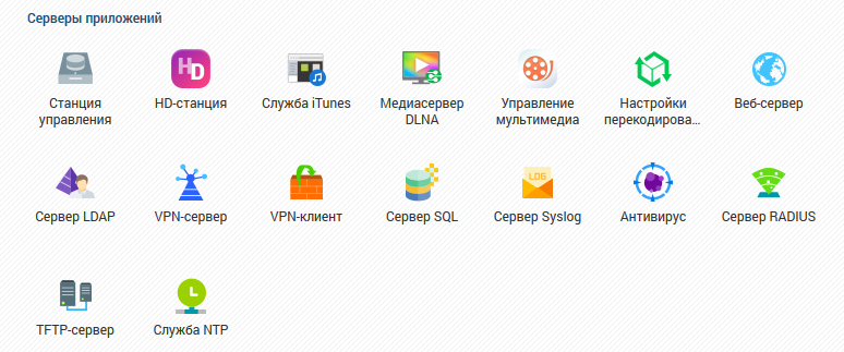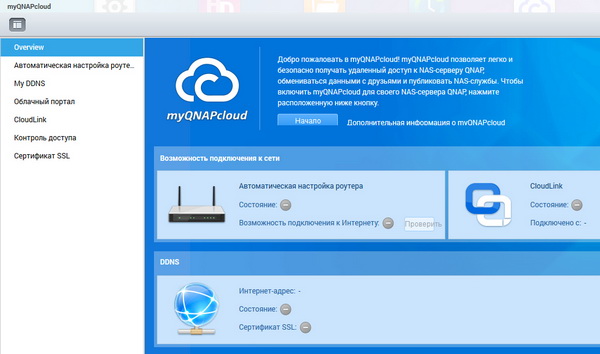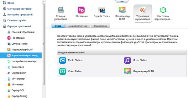 Первичную настройку провели - после этого при заходе в админку открывается вот такой красивый и удобный интерфейс управления накопителем и различными службами.