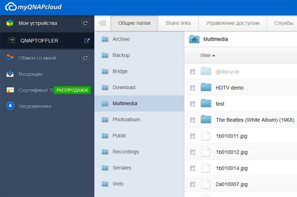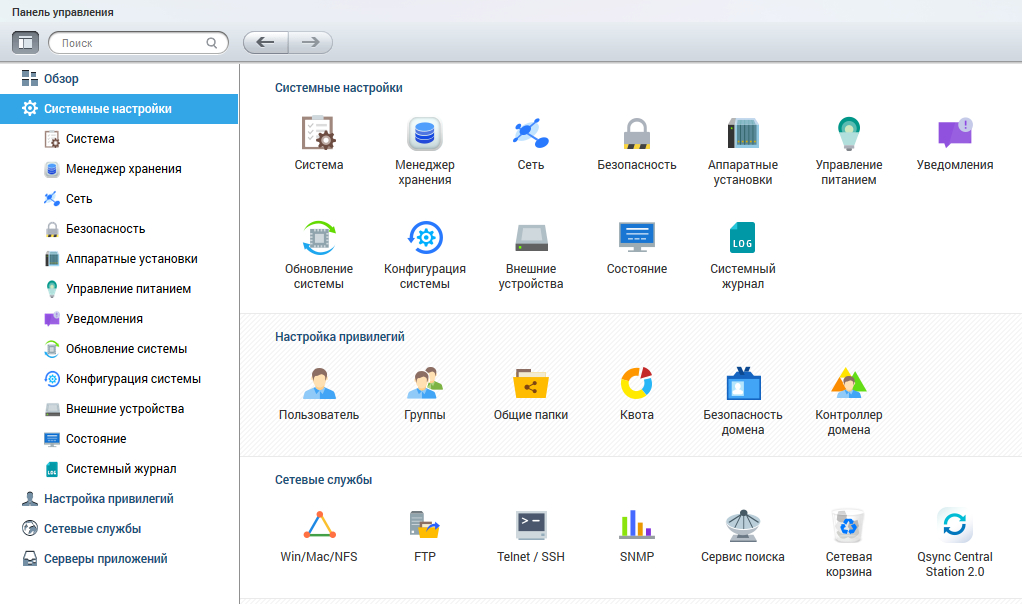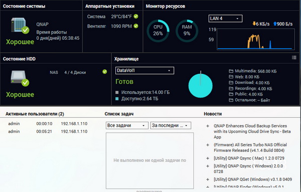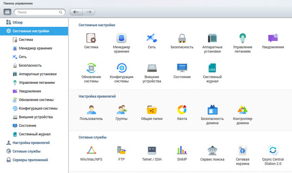 Администрируется накопитель, как обычно, через веб-интерфейс. Есть специальная программа QNAP Finder, которая найдет вам накопители QNAP в сети, но можно и без нее обойтись: NAS будет виден в сетевом окружении и в админку можно зайти просто по щелчку на соответствующей иконке.