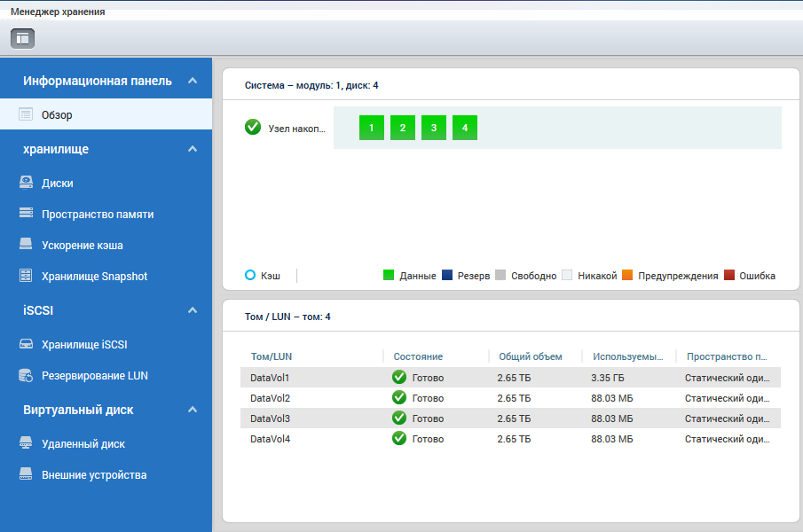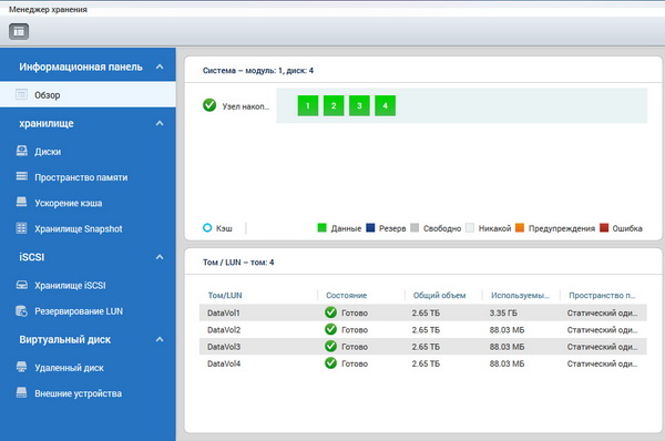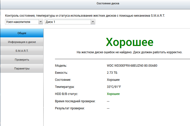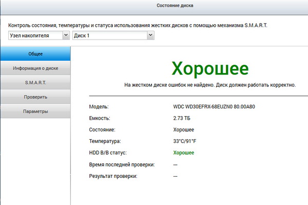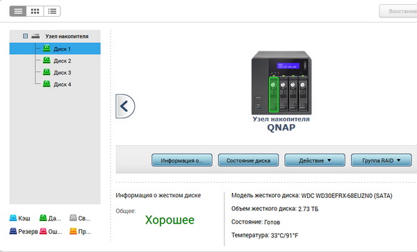 Самое важное в накопителе - состояние дисков. По каждому диску можно посмотреть соответствующую информацию.