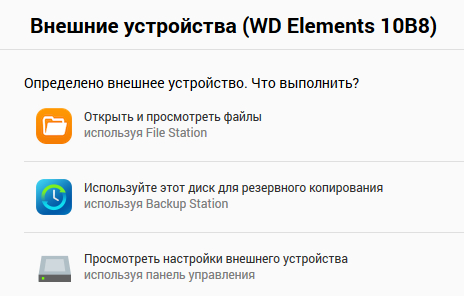 Вы можете настраивать реакцию накопителя на подключение тех или иных внешних устройств.