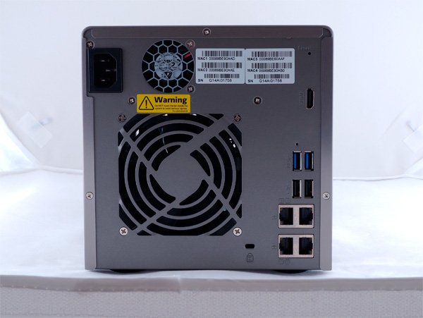 Корпус в традиционном для QNAP исполнении в стиле "устойчивый параллелепипед с физиономией строгого черного цвета".